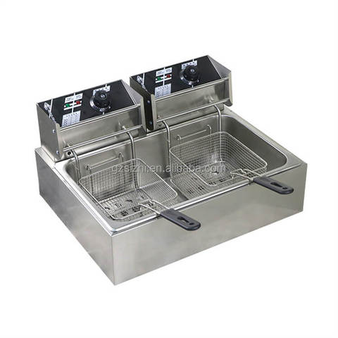 2-Tank 2-sepet elektrikli fritöz çelik anahtar paslanmaz güç plakası elektrikli fritöz
